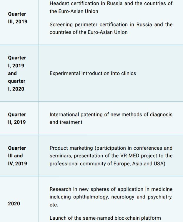 Hem teşhis alanında hem de tedavi alanı için, insanlara yardım edilmesi ve vakaların büyük çoğunluğunda iyi sonuçlar elde etmek için en yeni teknolojik gelişmeleri bu sistem kullanmayı amaçlamıştır. Bu sistem için ciddi çalışmalar yapan Rus bilim adamları, iyi tasarım ve ergonomik tasarıma sahip eşsiz bir sanal gerçeklik gözlüğü oluşturmayı başardılar. Bu sistem bir dizi önemli farklılığa sahiptir: optik parçacıklar, maksimum doğrulukla teşhislerin daha rahat gerçekleştirilmesine izin verir ve özel bir izleyici, yüksek hızda teşhis sağlar. Cihazın tıbbi alanda sayısız problemi çözmeye yardımcı olması ve kullanıma elverişli olması gibi özelliklerin yanı sıra, kaliteden ödün vermeden, analoglar arasında ciddi farklar oluşturan fazla bir maliyeti vardır. VR Med blockchain teknolojisine dayanan benzersiz bir şekilde tıbbi gelişmeler için il adım ve ileriki dönemleriçin birçok yenilik barındırır.